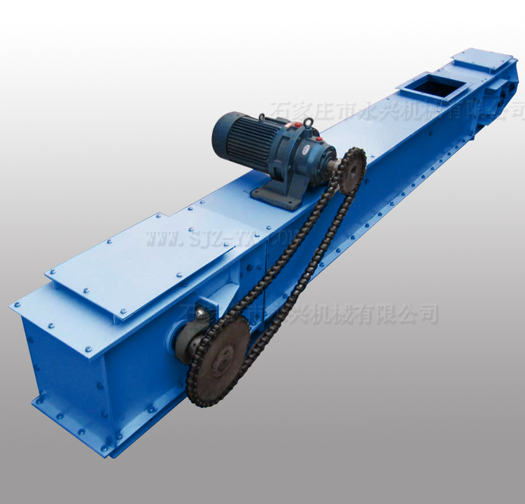 埋刮板輸送機(jī)是一種在封閉的矩形斷面的殼體內(nèi),借助于運(yùn)動(dòng)著的刮板鏈條連續(xù)輸送散狀物料的運(yùn)輸設(shè)備。埋刮板輸送機(jī)結(jié)構(gòu)簡(jiǎn)單,重量輕,體積小,密封性強(qiáng),安裝維修方便。它不但可以水平運(yùn)輸,也可傾斜或垂直運(yùn)輸,可多點(diǎn)加料,多點(diǎn)卸料,工藝布置靈活,全封閉運(yùn)輸不污染環(huán)境。當(dāng)發(fā)生過(guò)載時(shí),抗沖擊繼電器馬上切斷電源,保護(hù)整機(jī)完好。