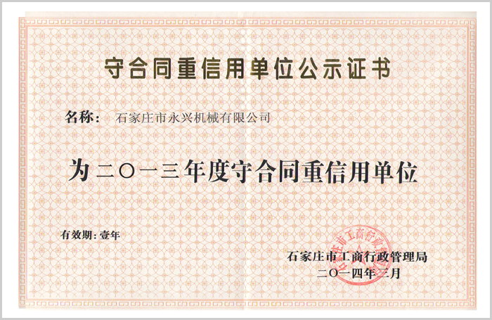守合同重信用單位證書